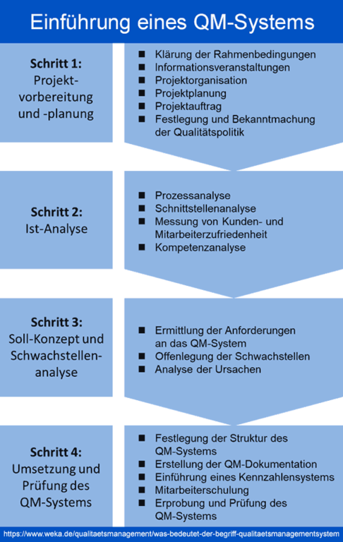 Unternehmen installieren ein Qualitätsmanagementsystem, um Qualität zu sichern und ständig zu verbessern.